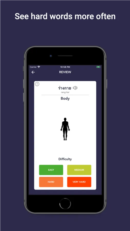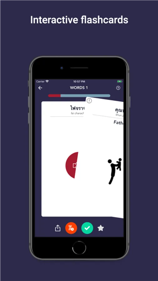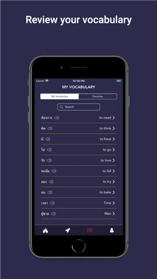 Learn 3500 Thai nouns, adjectives and verbs to enrich your vocabulary. Memorize most common Thai words. Listen pronunciation of the words. Learn with word games, phrases and word lists. Use flash cards to master frequently used, core vocabulary.