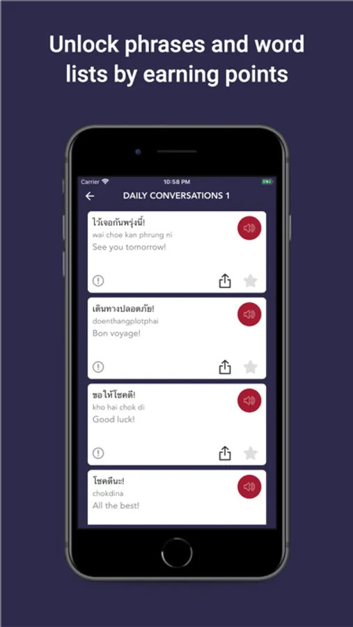 - Earn points by learning and practicing. Then unlock phrases and word lists.
