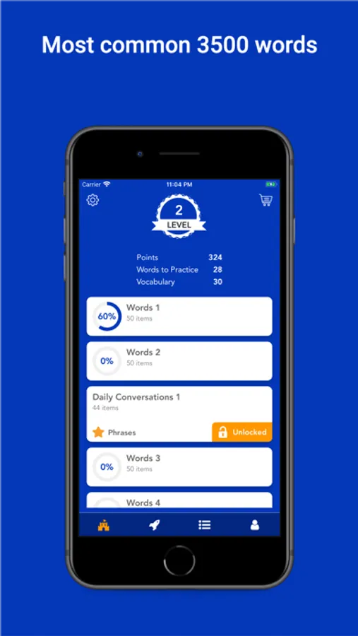 - Earn points by learning and practicing. Then unlock phrases and word lists.