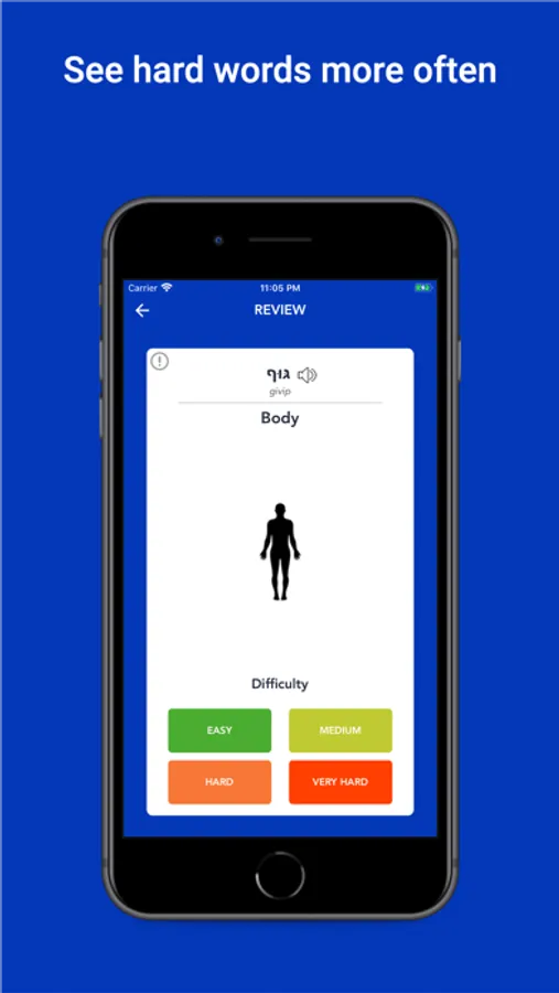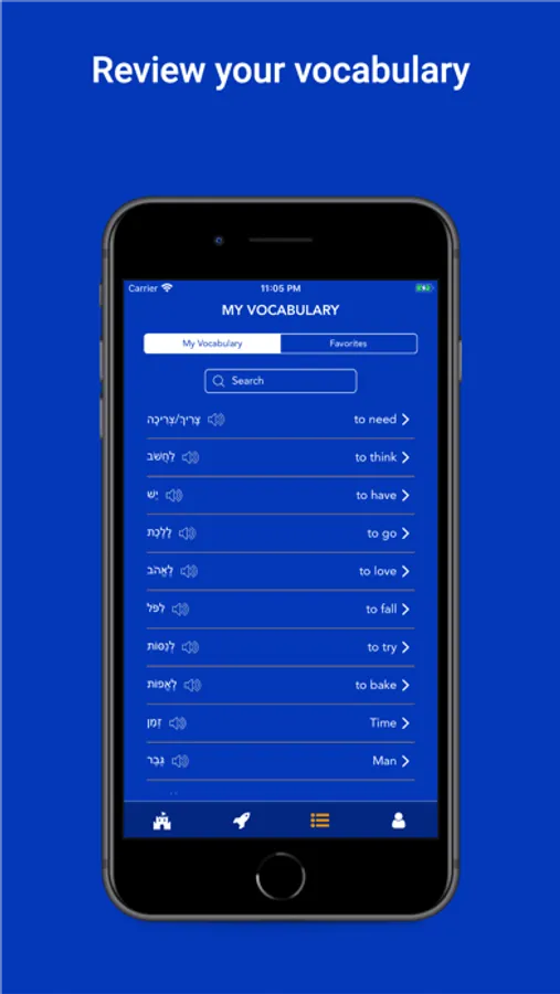 Learn 3500 Hebrew nouns, adjectives and verbs to enrich your vocabulary. Memorize most common Hebrew words. Listen pronunciation of the words. Learn with word games, phrases and word lists. Use flash cards to master frequently used, core vocabulary.