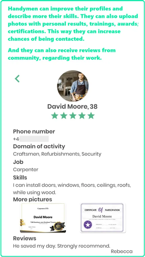 Solved mediates the relationship between client and handymen (named Solvers), finding the fastest and most suitable solutions to your needs. Working with a well-designed system, constantly improved by community reviews, you should be able to evaluate carefully the offer and find the best solution for yourself.
