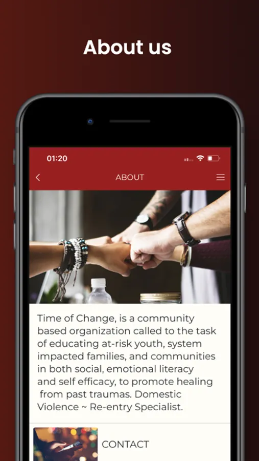 Time Of Change App to connect with staff, clients & network. Offer weekly and monthly event annoucements. Features includes organization info, staff info, chats and push notifications.