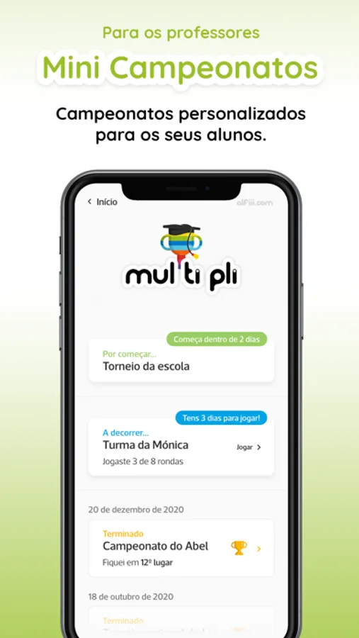 Modalidade exclusiva para Escolas/Alunos. Para ter acesso basta que a Escola/ Professor envie um pedido de acesso à modalidade, mais informação no site oficial do campeonato: https://campeonato.multipli.pt/. Começa a treinar