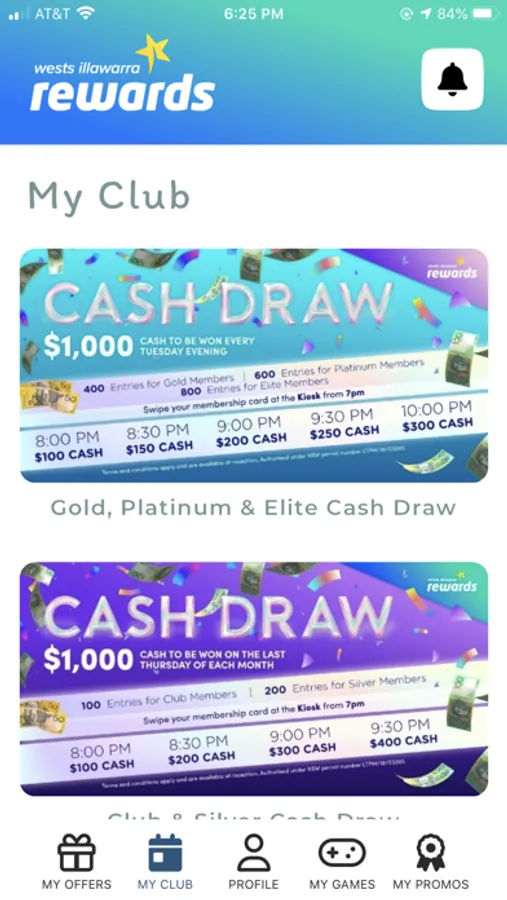 * Be part of exclusive interactive Club Promotions, sent to your phone via push notification for redemption at the venue counter