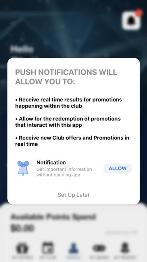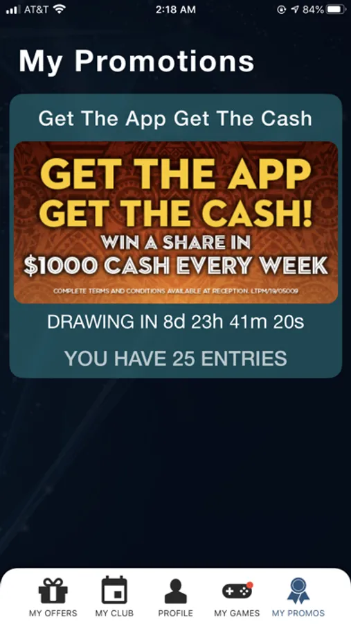 * Be part of exclusive interactive Club Promotions, sent to your phone via push notification for redemption at the venue counter
