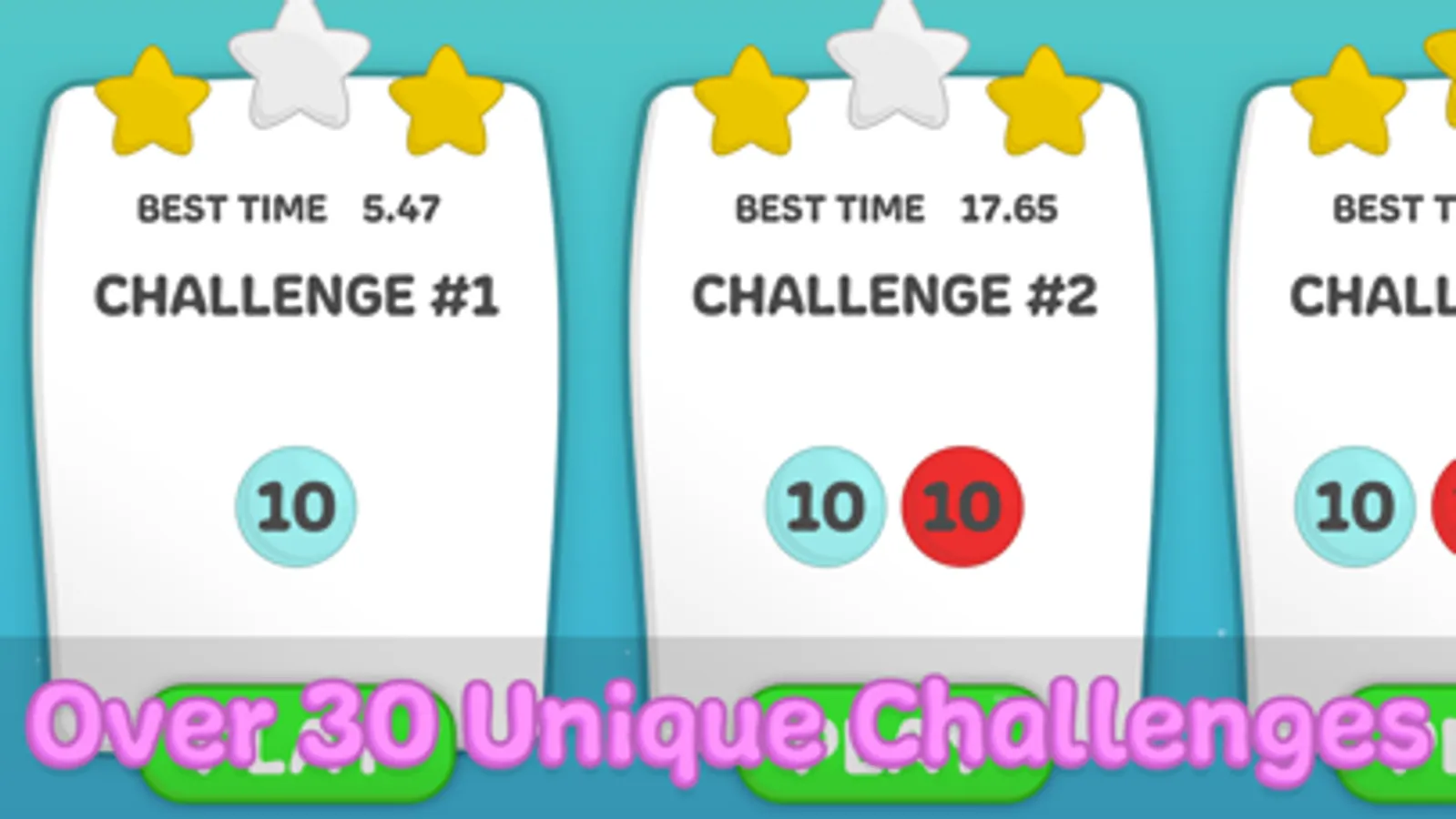 Want more of a challenge? Hop on over to Challenge mode where there are over 30 unique challenges setup to test your bubble popping skills! Are you fast enough to get all three stars for each challenge? Challenge mode is a great tool for kids to learn to identify shapes, colors, and follow rules.