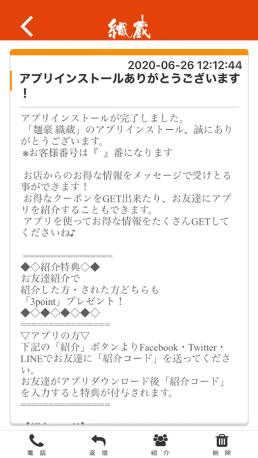 織蔵のアプリをSNSを通じてお友達に紹介する事ができます。