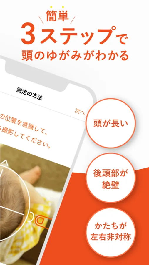 お子さまの頭のゆがみが気になったら、本アプリを活用し、医師への相談時にもお役立てください。