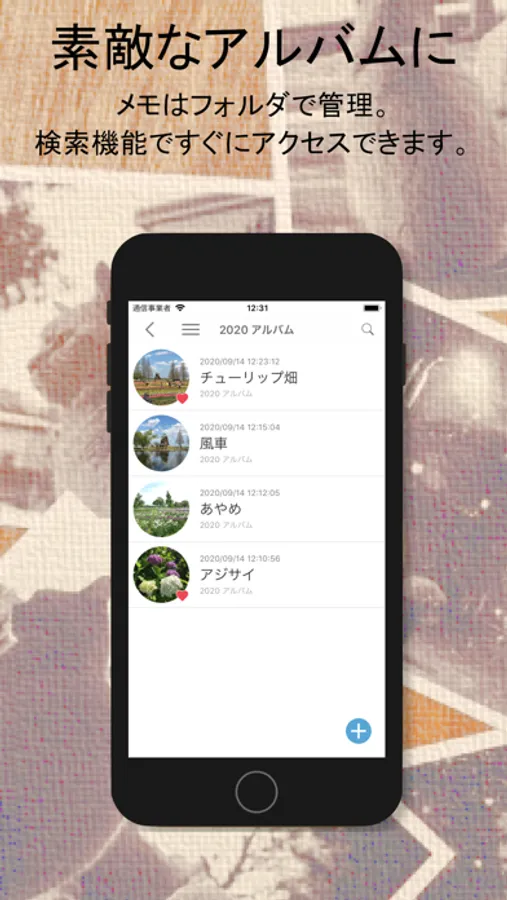 →画像、タイトル、説明を1セットとしてメモを作ることができます。