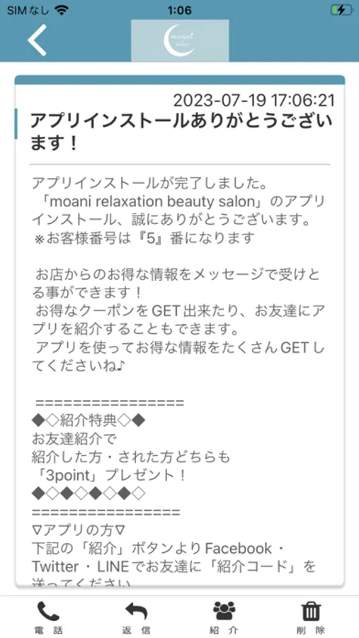 moaniのアプリをSNSを通じてお友達に紹介する事ができます。