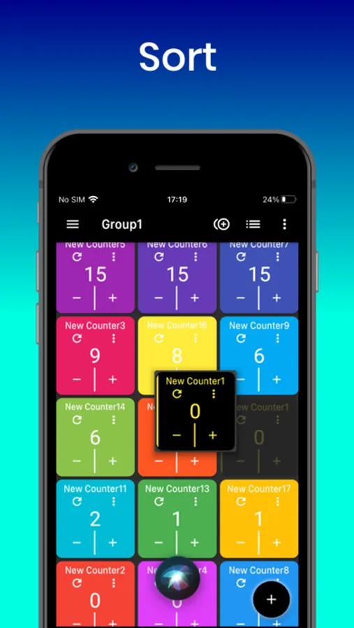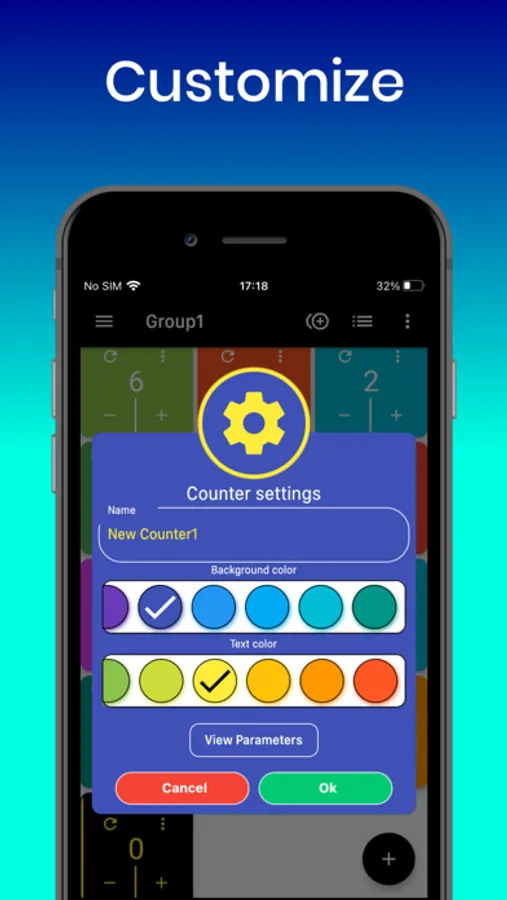 Create unlimited counters and organize them into customizable groups. Personalize each counter with a name, color, initial value, and increment/decrement settings. Switch between list or grid views, sort with drag-and-drop, and select multiple counters to count at once.