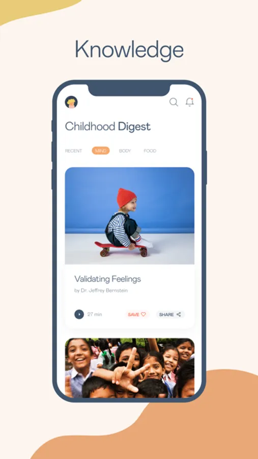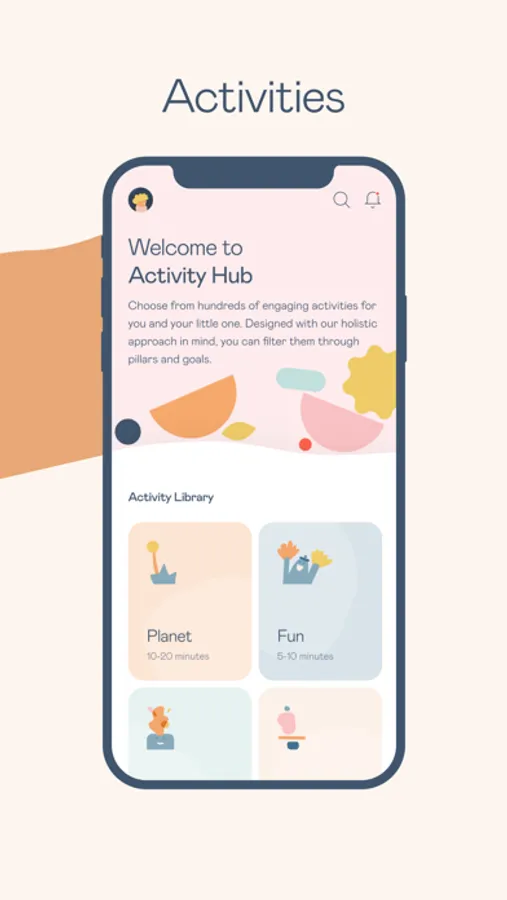 Activity Hub: Choose from hundreds of engaging activities for you and your little one. Designed with our holistic approach in mind, you can filter them through pillars and goals.