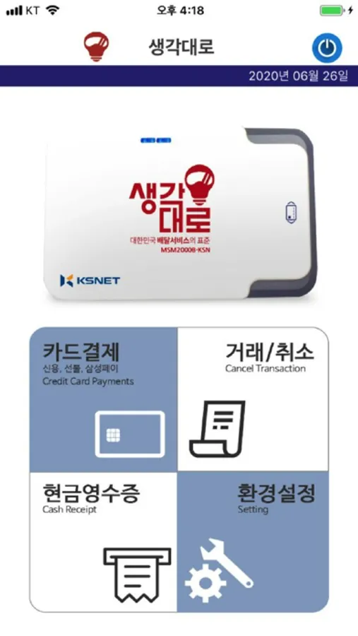 - 생각대로(일반가맹점)에서 제공하는 스마트폰용 IC카드 결제 솔루션입니다.