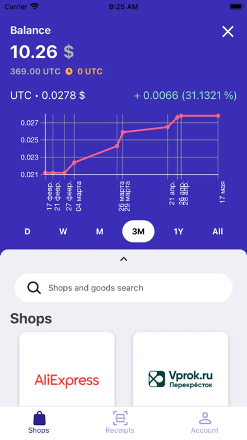 Get cashback in a stable and growing cryptocurrency with the "My UTcoin" app! Shop on online stores like AliExpress, TomTop, MiniInTheBox and more, and earn UTcoin cryptocurrency credited to your account. Our app uses reliable blockchain technologies, ensuring your coin account always grows.