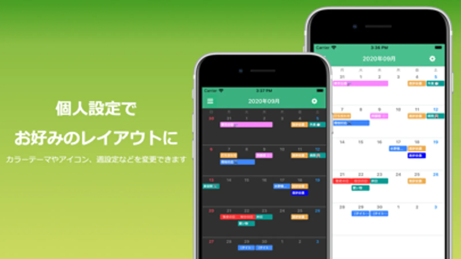 お好みのカラーテーマやアイコン、週設定などを変更することが可能です。
