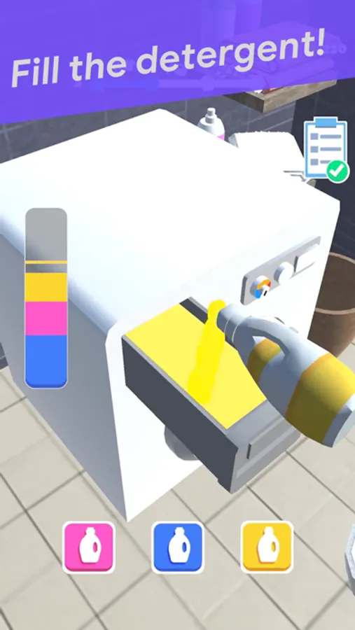 Washing clothes has been never been more satisfying! Can you sort the correct clothes, fill the correct amount of detergent, set the right temperature and complete all tasks perfect?