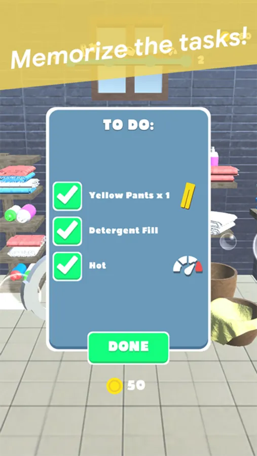 This is game is the very fun and satisfying laundry game. Each different phase will test your skills. Find the right clothes, pour correct amount of detergent, set the right temperature. So many unique tasks to get the job done right!