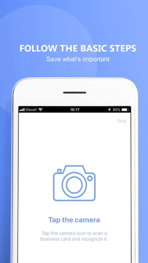 1. Take a photo of a business card, the app will automatically recognize all the information from it.