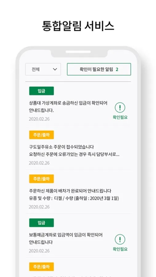 주문/배차/출하/입금/신용정보 등 S-OIL이 제공하는 실시간 주요 정보 서비스를 모바일 앱을 통해 언제 어디서나 제공받으실 수 있습니다