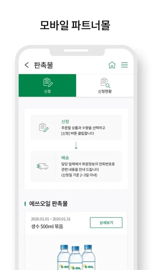 S-OIL의 모바일 파트너몰을 통해 파트너에게 필요한 판촉상품 및 운영에 필요한 물품을 구입하실 수 있습니다