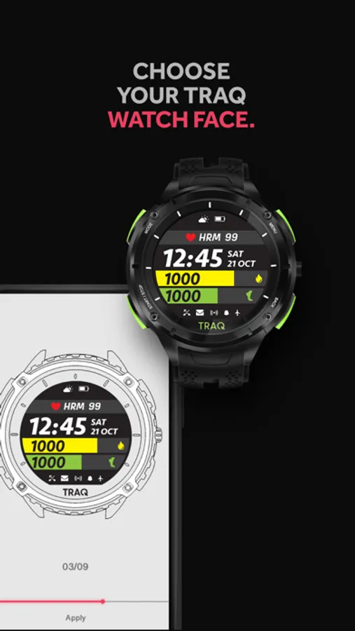 Want to revamp the look of your TRAQ performance gear? Change the watch-face of your performance gear with the TRAQ app. Choose from several options according to your preferences and the details you want your watch-face to have.