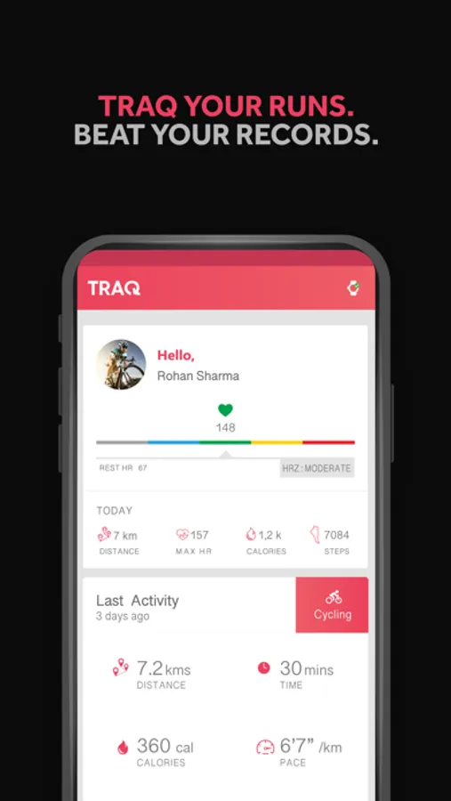 The TRAQ app is your go-to partner for tracking athletic activities. The TraQ Performance Gear helps in tracking metrics during activities such as Running, Cycling and Swimming.