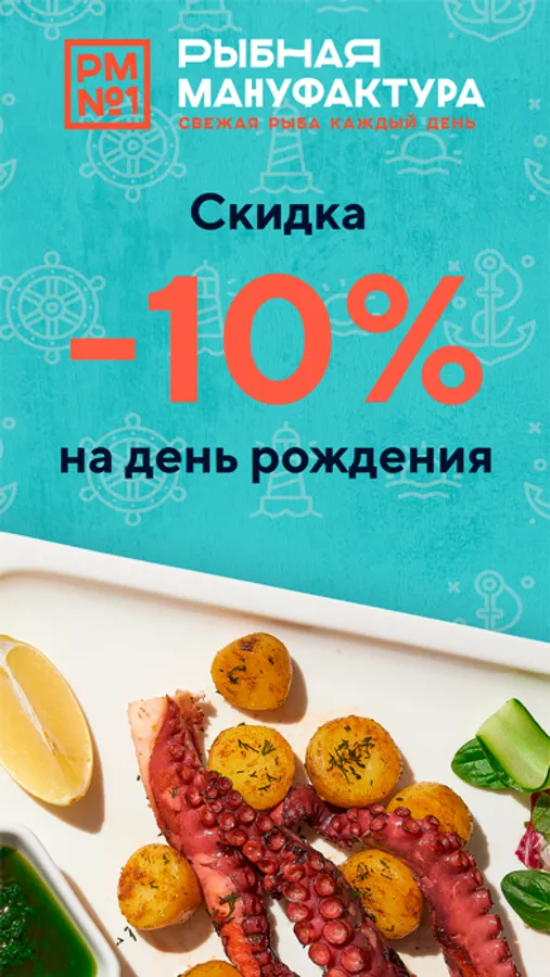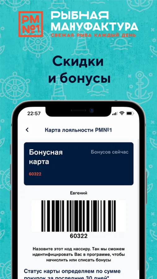 Загляните в личный кабинет — в нем появилась ваша бонусная карта участника нашего «Рыбного Клуба». Вы уже копите бонусы с каждой покупки. Теперь бонусы можно потратить не только в нашем магазине или бистро, но и при новом заказе в приложении, а также на нашем сайте rm-1.ru