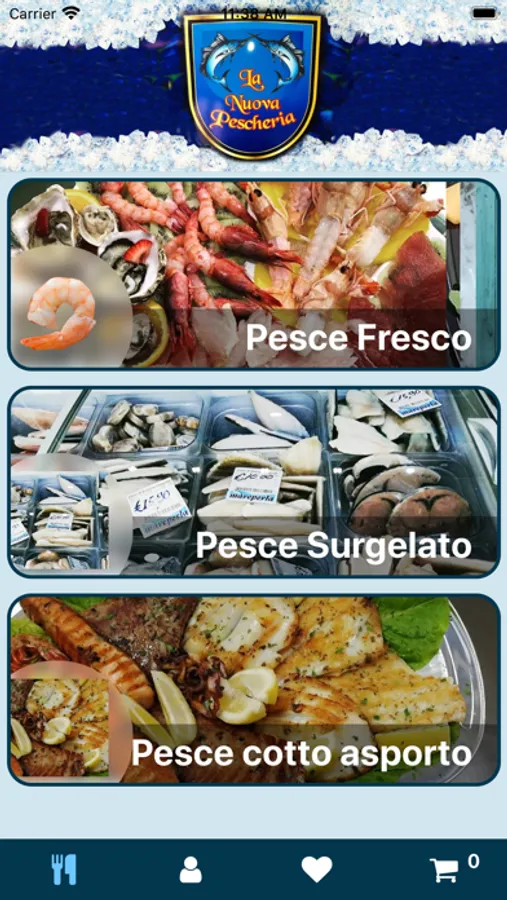 Pesce fresco surgelato e cibi cotti. Puoi ordinare direttamente da casa.
