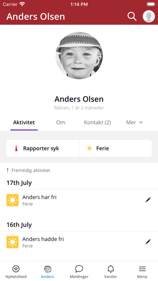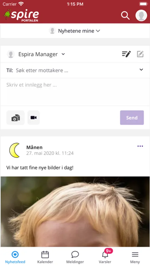 I nyhetsfeeden kan du følge barnets hverdag i barnehagen og alle aktiviteter, bilder, videoer og hendelser.