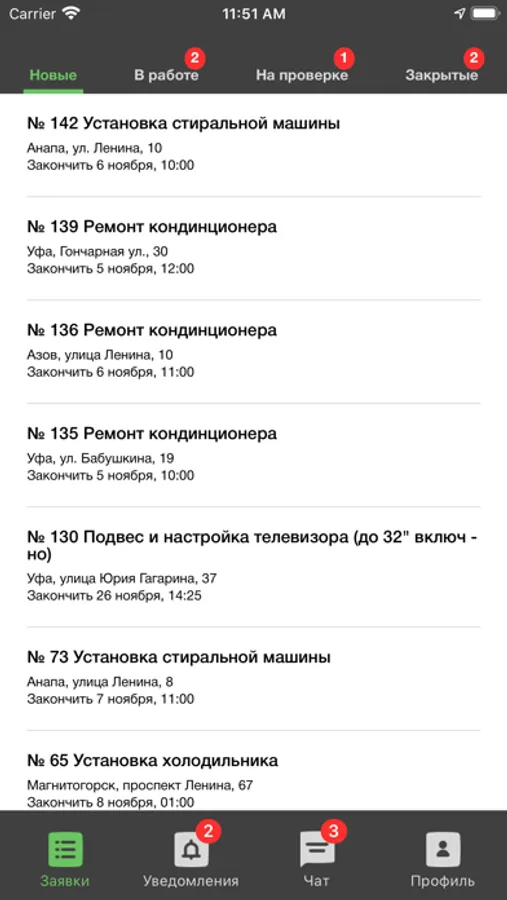 Приложение для исполнителей работ где они могут видеть заявки по месту территории их работ и расположению, принимать заявки и выполнять их.