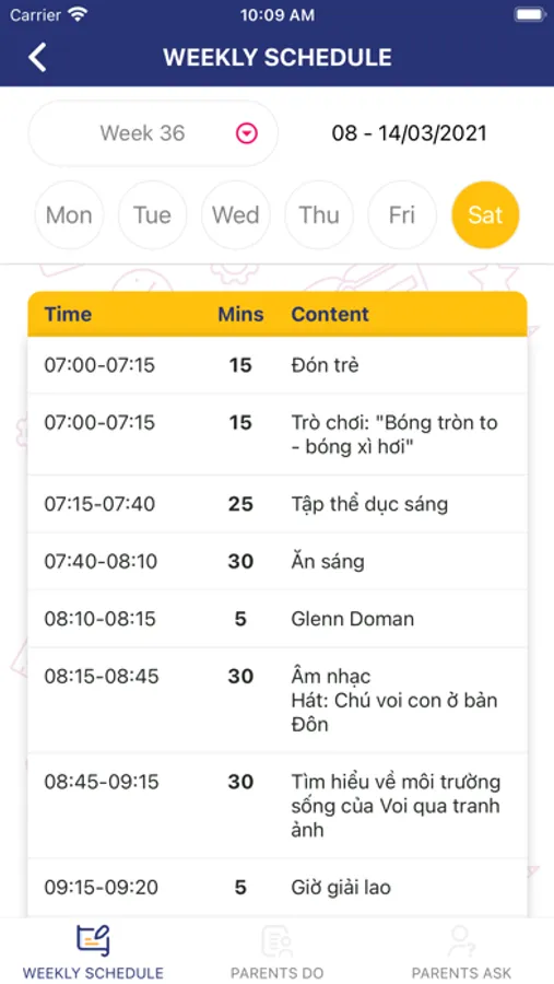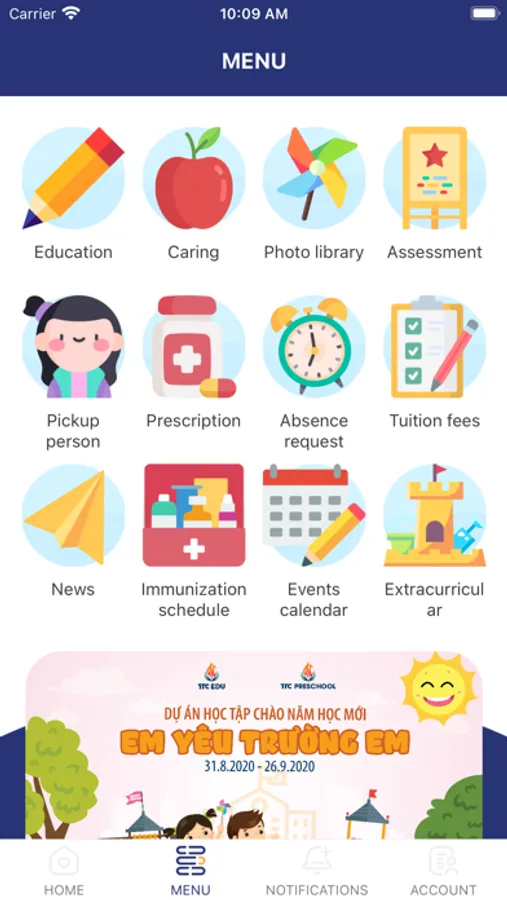 Application connecting parents to our school in care and education of children, which allows parents to: