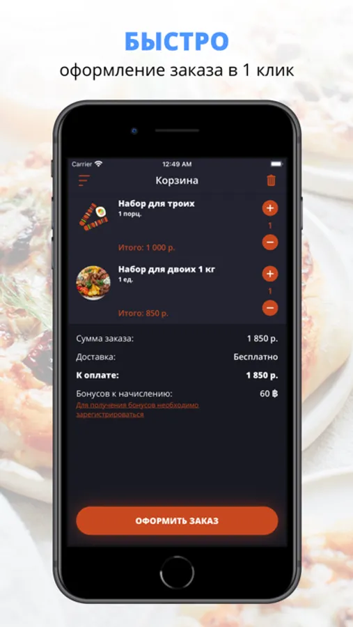 Заказывайте Ваши любимые блюда у нас, и Вы останетесь довольны качеством сервиса. У нас работают опытные повара, а курьеры приятно порадуют вежливостью и быстрой доставкой.