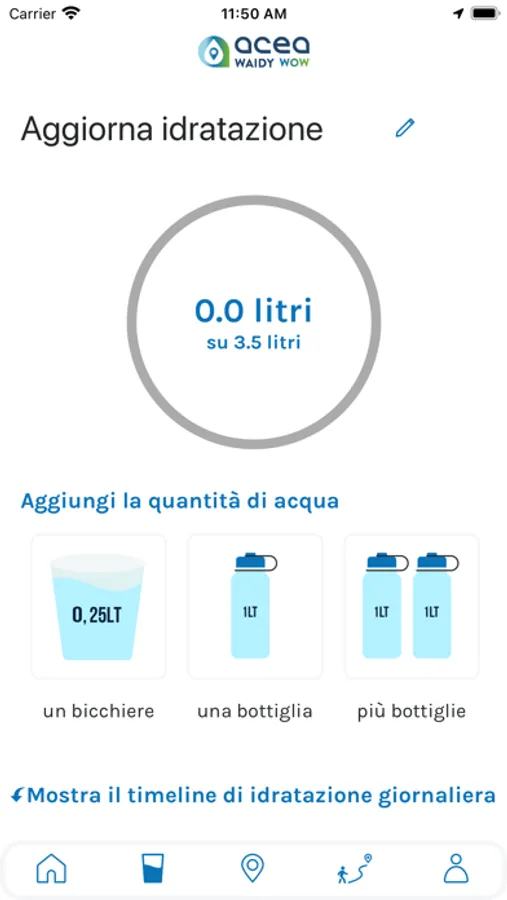 - AGGIORNA LA TUA IDRATAZIONE QUOTIDIANA: con Waidy WOW puoi tracciare e monitorare la tua idratazione quotidiana. Sapere quanta acqua bevi e dovresti bere al giorno è fondamentale per mantenere o ritrovare uno stile di vita sano e attivo.