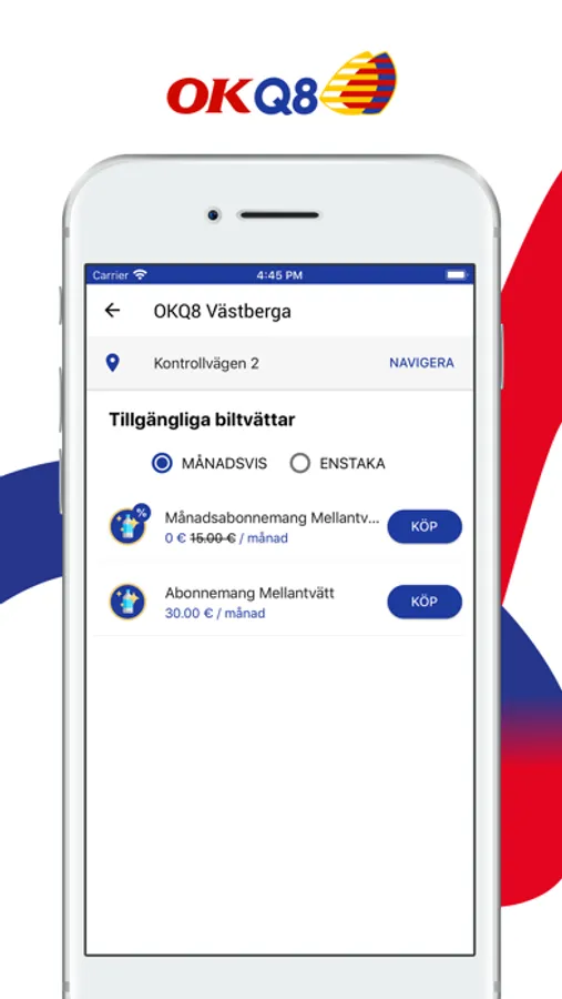Ladda ner vår app OKQ8 för att teckna tvättabonnemang.