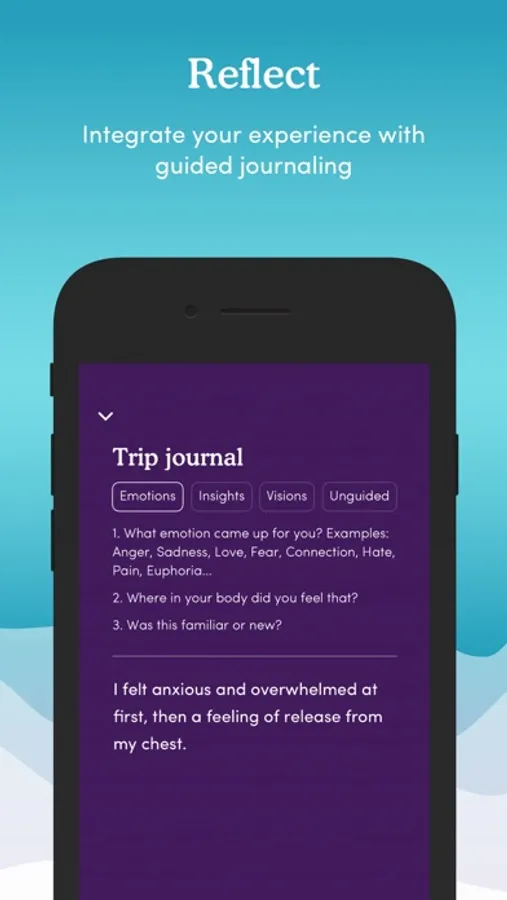 - Journaling prompts, check-ins, and reminders for integrating the psychedelic experience