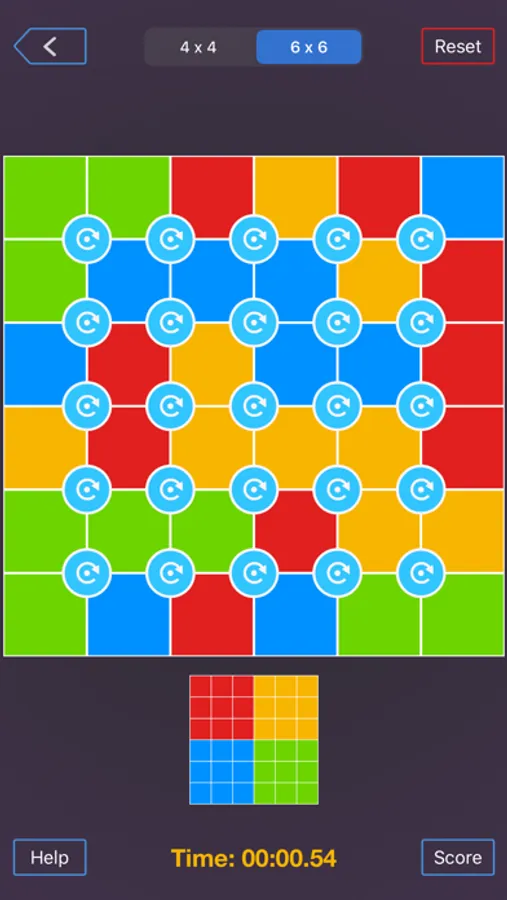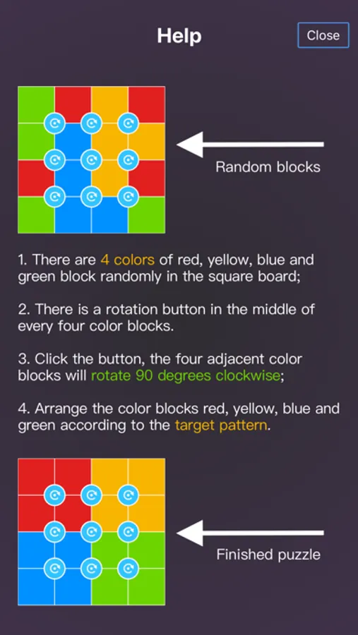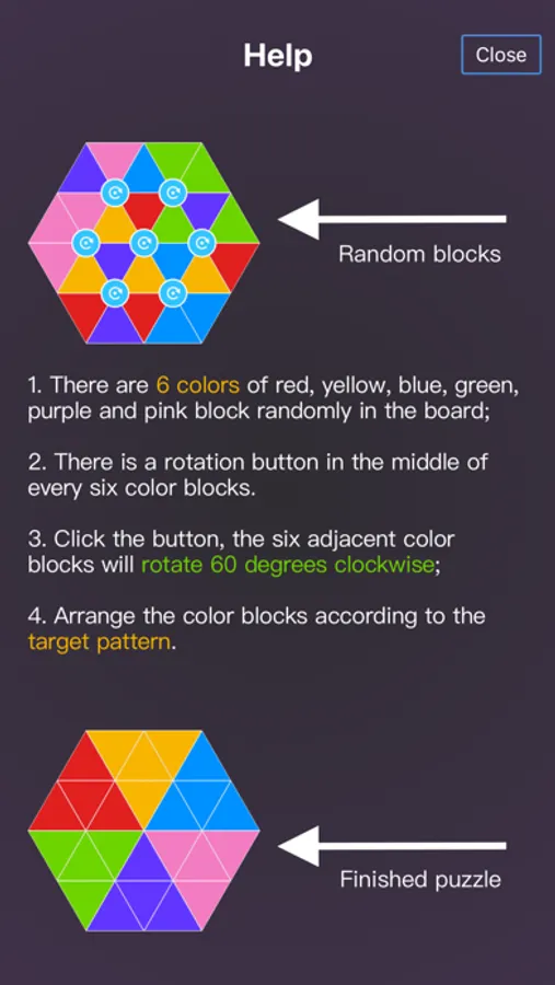 2. There is a rotation button in the middle of every six color blocks.