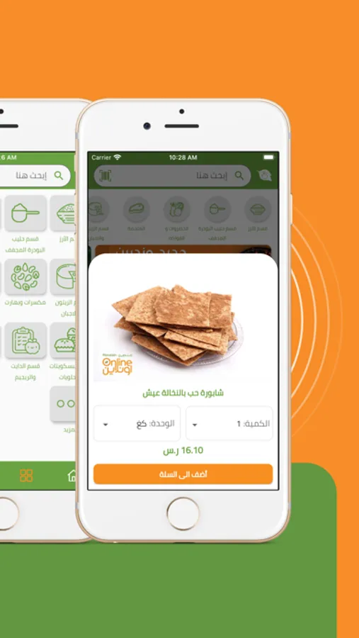 Main shopping sections (vegetables and fruits, rice, dried milk powder, butchery, bakery, nuts and spices, biscuits and sweets, diet and diet, coffee and hot drinks, olives and cheese and more)