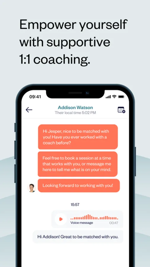 The Sama app is your space where our experienced, accredited professional coaches will work with you completely confidentially. We use our proprietary algorithm to match you with the best coach for you. You can book video calls or chat with your coach through the messaging function.
