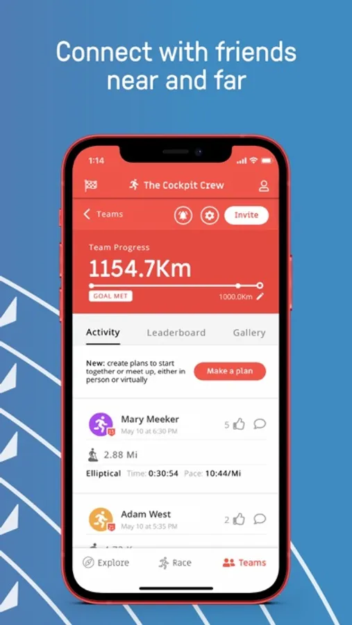 Whether you’re running, jogging, or just walking—Run Across America is a simple and fun way to stay active, each and every day. Keep track of your activity, earn badges for your achievements, and connect with others in the Run Across America app. On race day, capture your results, take a finish line selfie, and find your standing on the leaderboard.