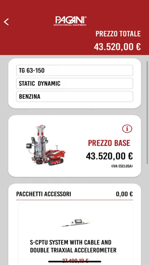 With the App, you can access the entire Pagani Geotechnical Equipment catalogue and pre-configure the best solution for your needs, by choosing the machine and accessories that best suit the type of project you are carrying out.