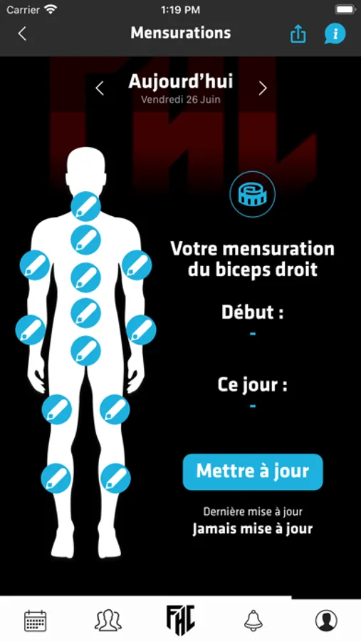 Notre application a la capacité de se synchroniser avec Santé pour afficher les données de santé du jour dans l’écran d’activité de l’utilisateur. Pour mieux suivre les entraînements, l’utilisateur peut partager les données avec le coach.