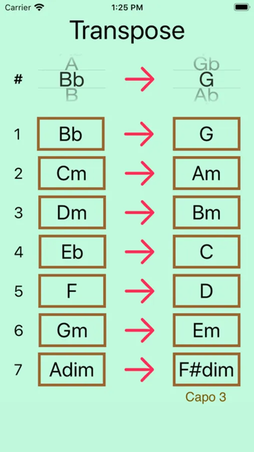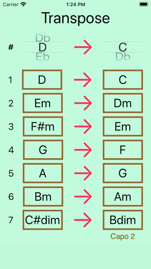 Chord Transposer Helper is a simple to use chord translation app to help musicians transpose songs to different keys.