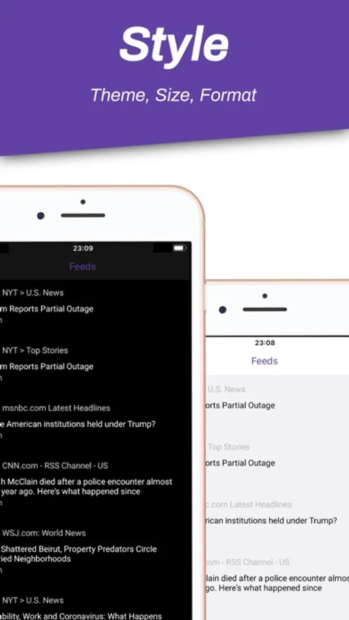 Readerss allows you to read rss in either dark or light mode for better visibility in any condition; in different text size for all ages; in different preview format for facilitating your reading journey.