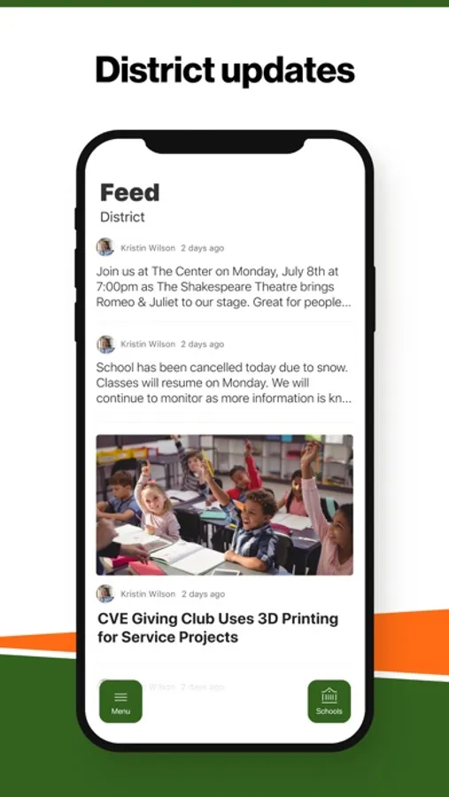 In the Live Feed is where you'll find updates from the administration about what's going on in the district right now. Whether that's celebrating a student's success, or reminding you about an upcoming deadline.