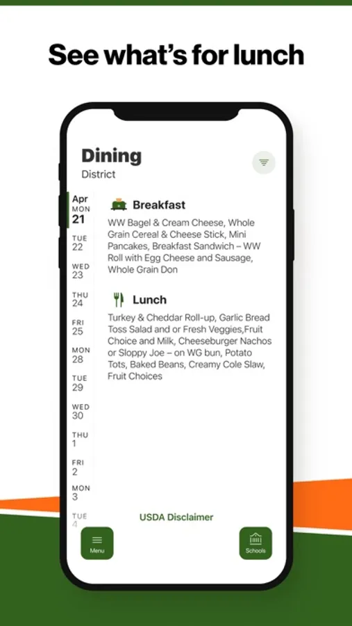 Within the dining section, you'll find an easy to navigate, weekly menu, sorted by day and meal type.