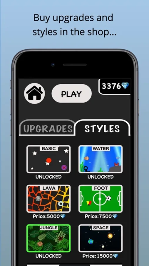 Collect diamonds to buy upgrades in the shop as well as buy different styles that change the feel and sound of the game.