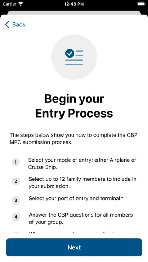 4.) Travelers proceed to the MPC designated queue upon arrival and present their QR code to a CBP Officer along with their passport. Please note: MPC does not replace your passport; your passport will need to be presented to the CBP Officer.