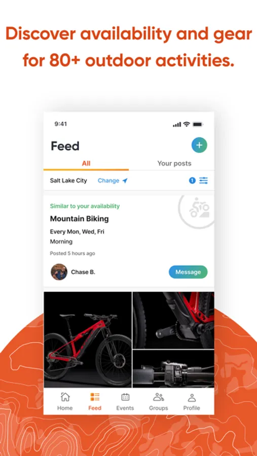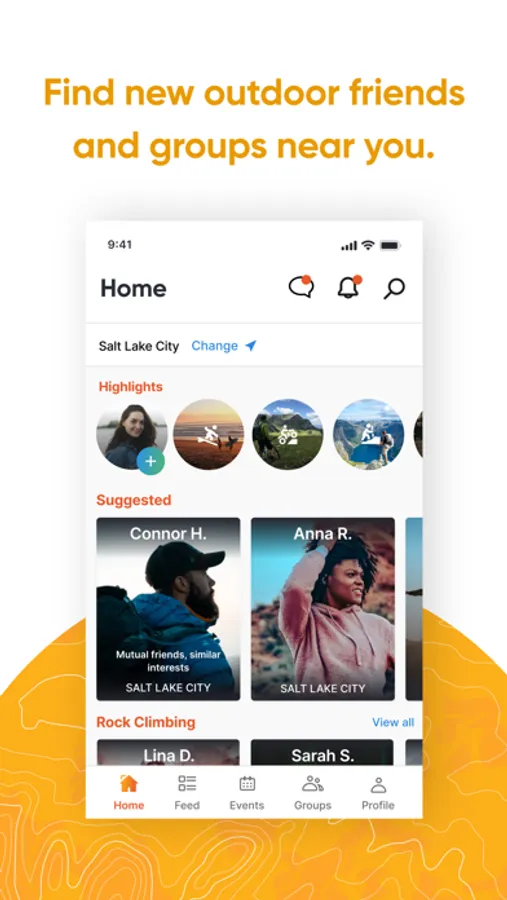 The home screen helps you find new outdoor buddies based on your outdoor interests and location. You can filter or search for connections. Whether you’re new to a city or new to an activity, an instant connection is only a message away.