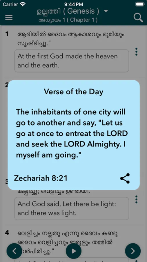 The application has a very friendly interface that will allow you to read the Bible in Malayalam at any time and feed the soul with its beautiful verses and the teachings of our Lord Jesus. You can read at any time on your cell phone and share the sacred scripture with whoever you want. The Bible does not need an Internet connection to read.