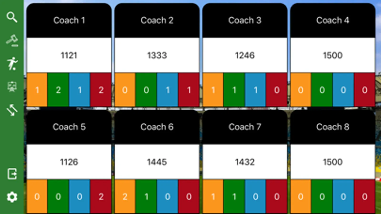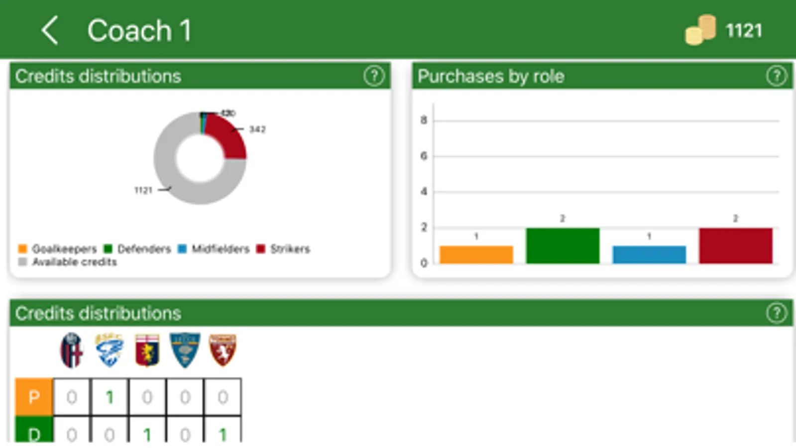 * Summary of all the fantasy coaches (from 6 to 16) with residual credits and number of players purchased per role. All in one screen;
